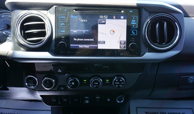 The 2018 Toyota Tacoma SR V6 offers a reliable driving experience with its powerful 3.5L V6 engine that delivers 278 horsepower and 265 ft. lbs. of torque. This model comes equipped with a range of factory default features designed to enhance comfort and convenience on the road. Inside, you'll find a spacious cabin with comfortable fabric-trimmed seats for up to five passengers. The Entune Audio system includes a 6.1-inch touchscreen display, AM/FM radio, CD player, USB port, and Bluetooth connectivity for hands-free calling and music streaming. Safety is a priority with the Tacoma SR V6, featuring Toyota Safety Sense P (TSS-P) which includes a pre-collision system with pedestrian detection, lane departure alert, automatic high beams, and dynamic radar cruise control. Other notable features include a rear backup camera, power windows and door locks, air conditioning, and an integrated backup camera for added convenience. The 2018 Toyota Tacoma SR V6 is a versatile and capable truck that is ready for any adventure.